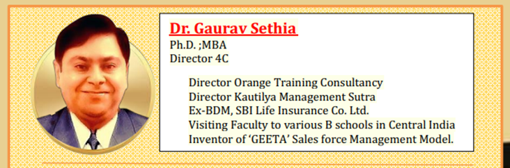 • He brings with him an experience of fifteen years into Industry, Training & Academics. He is an expert in the field of communication skills & is invited by prestigious institutions like IIM Indore & other premier management colleges in Central India for the same. Apart of being a faculty of consumer behaviour & marketing he has designed many behavioural skills & sales skills development programs for corporates.